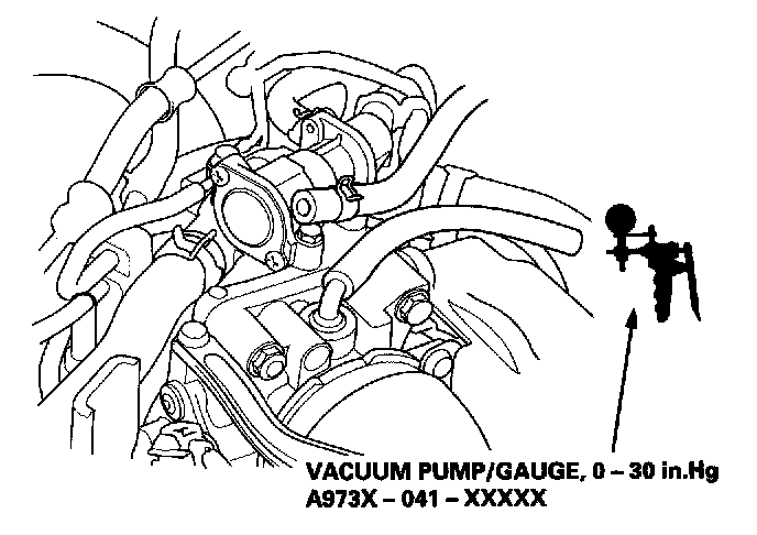 1. Disconnect the vacuum hose (to the EVAP canister) from the top of the throttle body; connect a vacuum gauge to the throttle body.