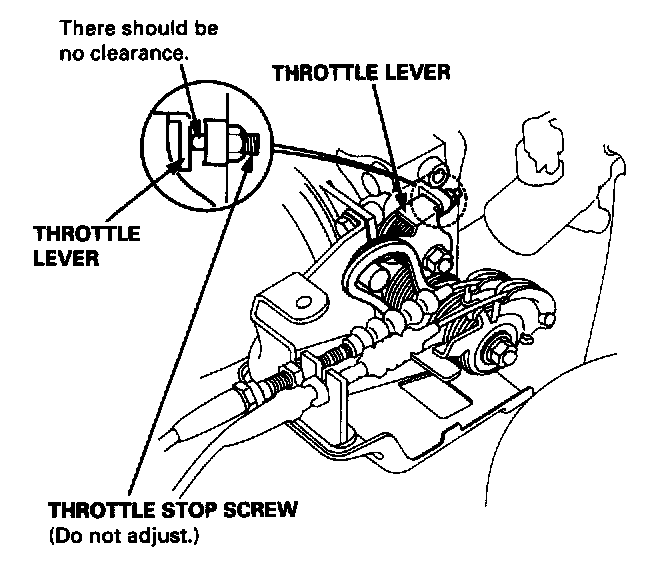 - Clearance between throttle stop screw and throttle lever at the fully closed position.