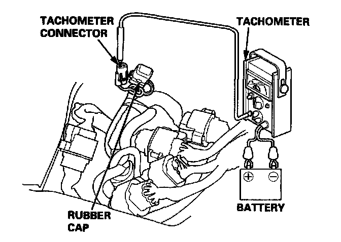 - Remove the rubber cap from the tachometer connector and connect a tachometer.