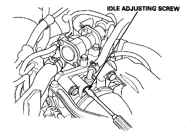 Adjust the idle speed, if necessary, by turning the idle adjusting screw.