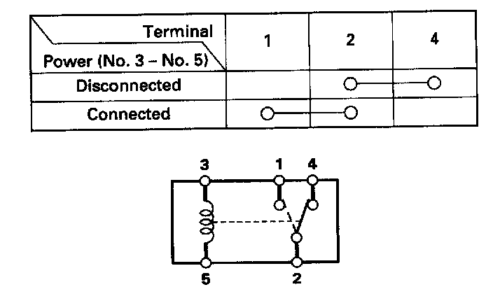 - There should be continuity between the No.2 and No.4 terminals when power is disconnected.