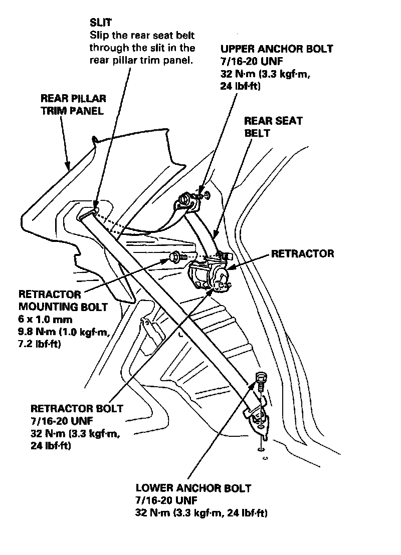 - Before installing the anchor bolt, make sure there are no twists or kinks in the rear seat belt.