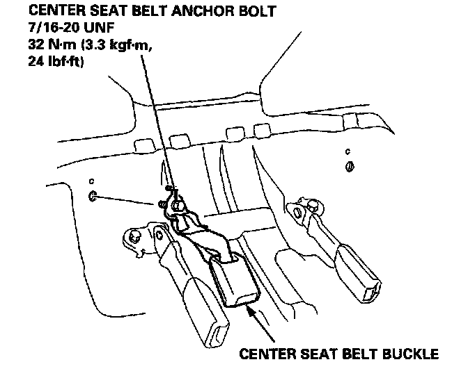 3. Remove the center seat belt anchor bolt, then remove the center seat belt buckle.