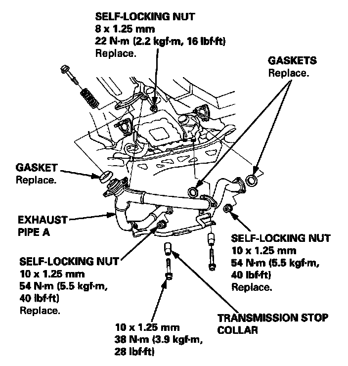 9. Remove the transmission stop collar, then remove the exhaust pipe A.