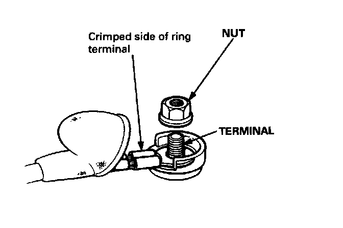 NOTE: When installing the starter cable, make sure that the crimped side of the ring terminal is facing out.
