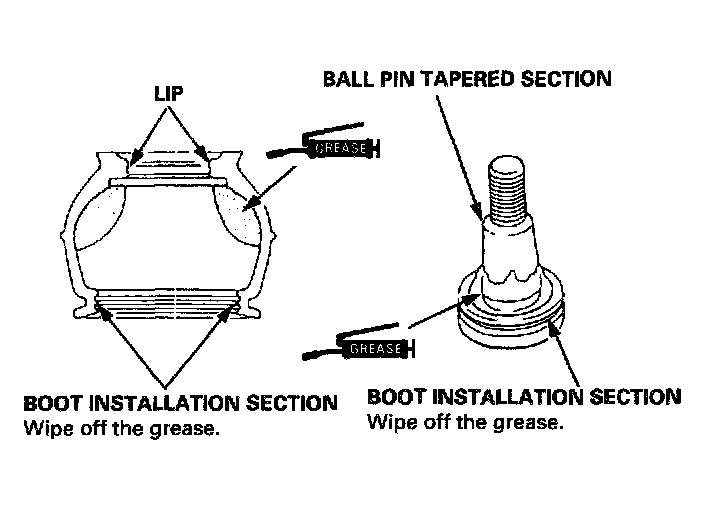 - Keep grease off the boot installation section and the tapered section of the ball pin.