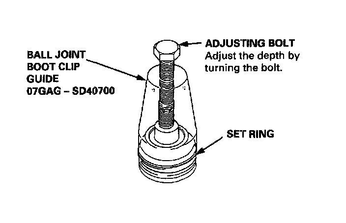 Adjust the special tool with the adjusting bolt until the end of the tool aligns with the groove on the boot. Slide the set ring over the tool and into position.
