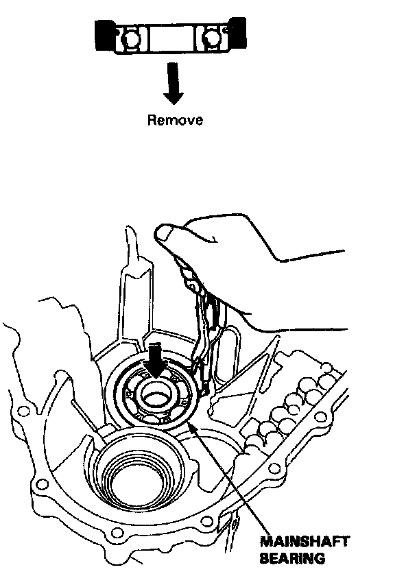 Replacement1. To remove the mainshaft bearing from the transmission housing, expand the snap ring with the snap ring pliers, then push the bearing out.