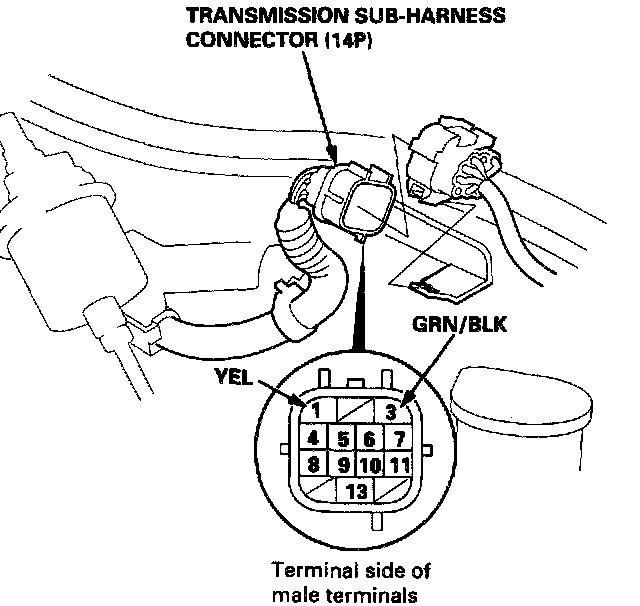 Test1. Disconnect the transmission sub-harness connector (14P).