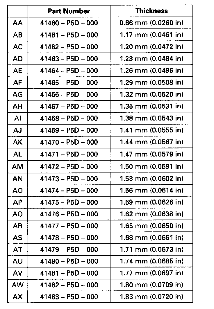 - The total thickness of both shims must still equal the total thickness of the original shims.