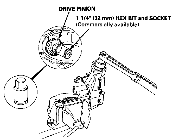 7. Hold the drive pinion with a 1 1/4" (32 mm) hex bit and socket as shown.