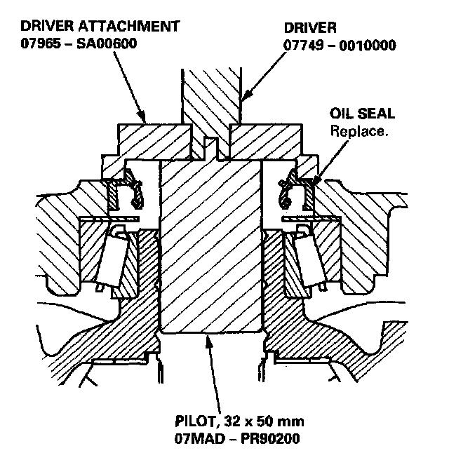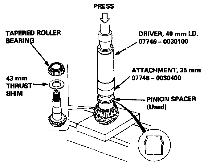 NOTE: Use a used pinion spacer with the special tool for bearing installation, and then discard the used pinion spacer.