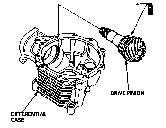5. Apply lubricant to the tapered roller bearing, then install the drive pinion into the differential case as shown.