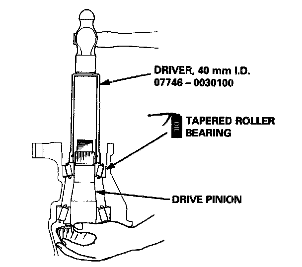 NOTE: Rotate the drive pinion several times to assure proper tapered roller bearing contact.