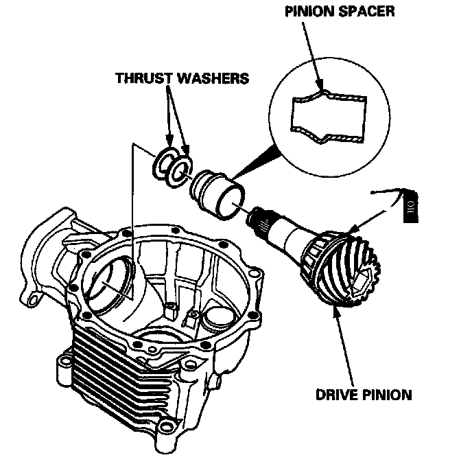 NOTE: Do not install the pinion spacer and thrust washers at this time.