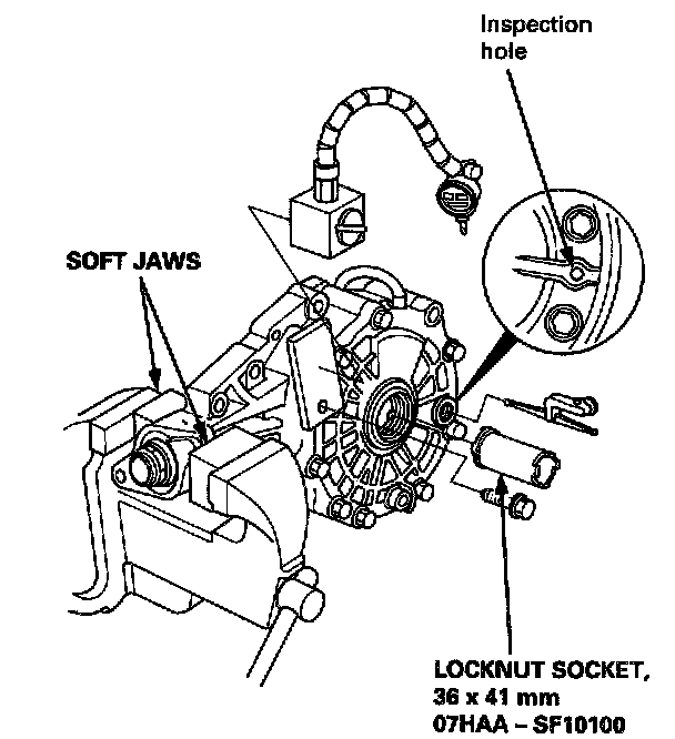 - If the tapered roller bearing preload is less than the standard, adjust by tightening the locknut a little at a time, but keep the torque within 216 - 313 Nm (22 32 kgf-m, 159 - 231 ft. lbs.). If this not possible, replace the pinion spacer.