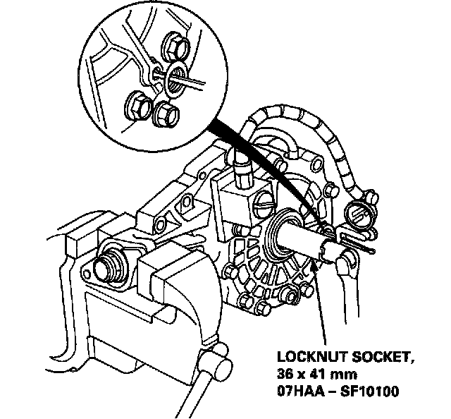 NOTE: Be sure the tab of the locknut is completely clear of the groove or damage to the threads can occur.