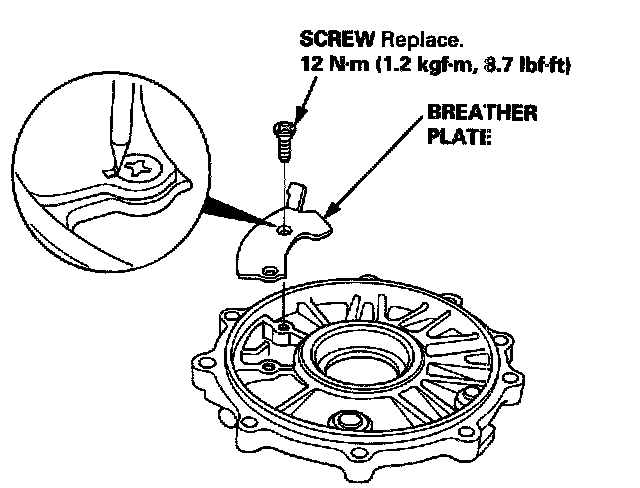 30. After all adjustments are made, install the breather plate and stake the screw heads in the groove as shown.