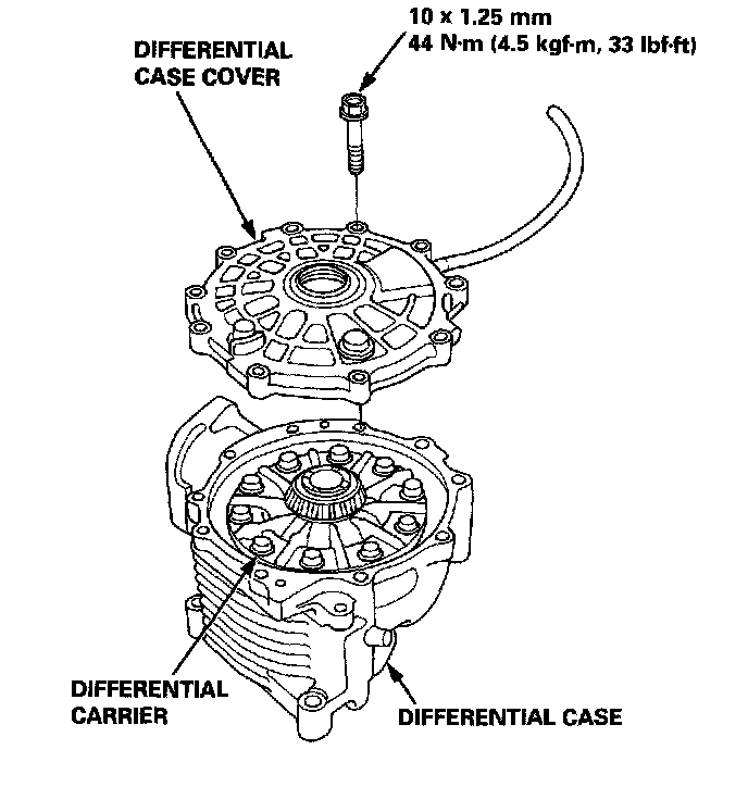 Disassembly1. Remove the bolts in a crisscross pattern, in several steps, then remove the differential case cover.