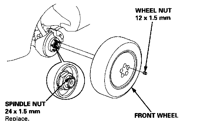 10. Install the front wheel with the wheel nuts.
