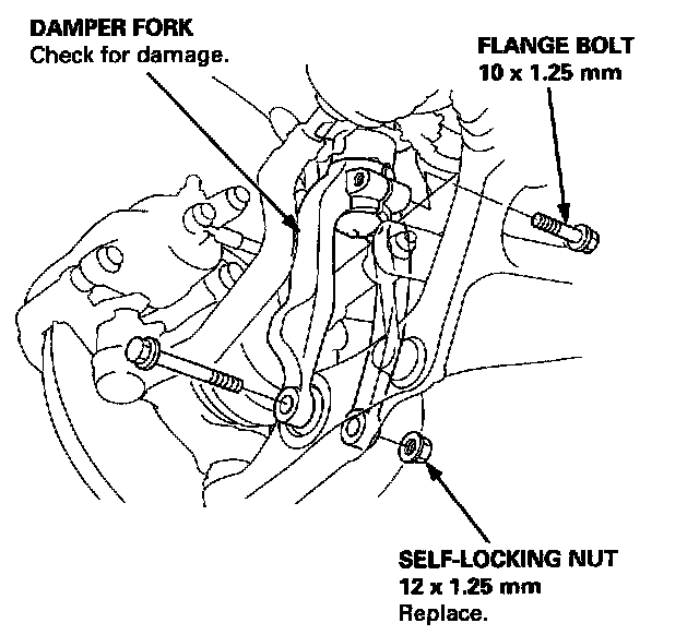6. Remove the self-locking nut and flange bolts from the damper fork.