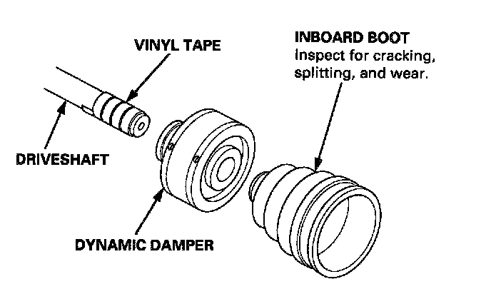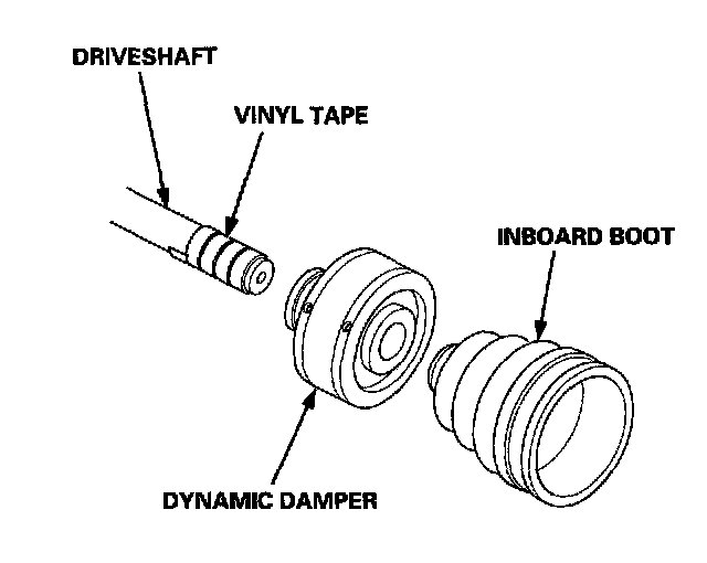 2. Install the dynamic damper and inboard boot to the driveshaft, then remove the vinyl tape. Take care not to damage the inboard boot and dynamic damper.