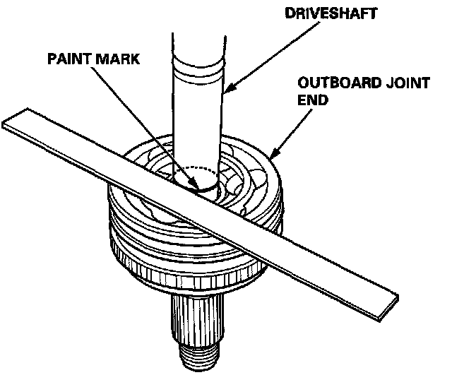 4. Mark the driveshaft at the same position of the out board joint end with paint.
