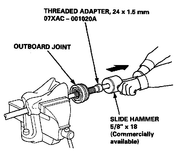 6. Remove the outboard joint using the special tool and a commercially available 5/8" x 18 slide hammer.