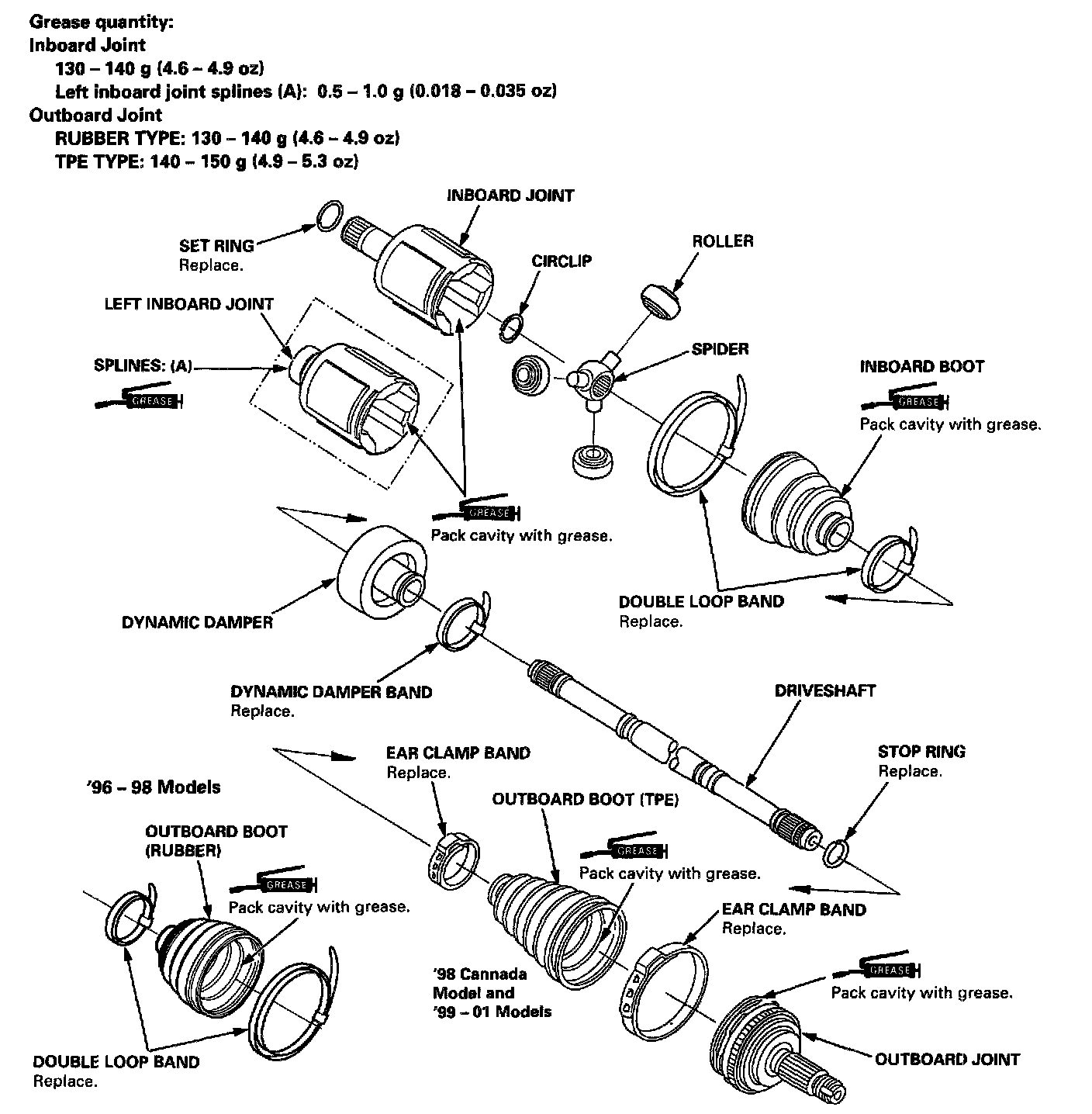 - The '98 Canada model and all '99 - 01 models use a Thermoplastic Polyester Elastomer (TPE) outboard joint boot. Use the ear clamp type boot band in the outboard joint boot set.