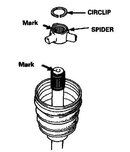 3. Install the spider onto the driveshaft by aligning the mark on the spider and the end of the driveshaft.