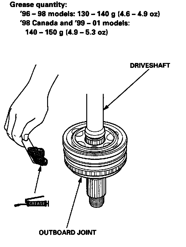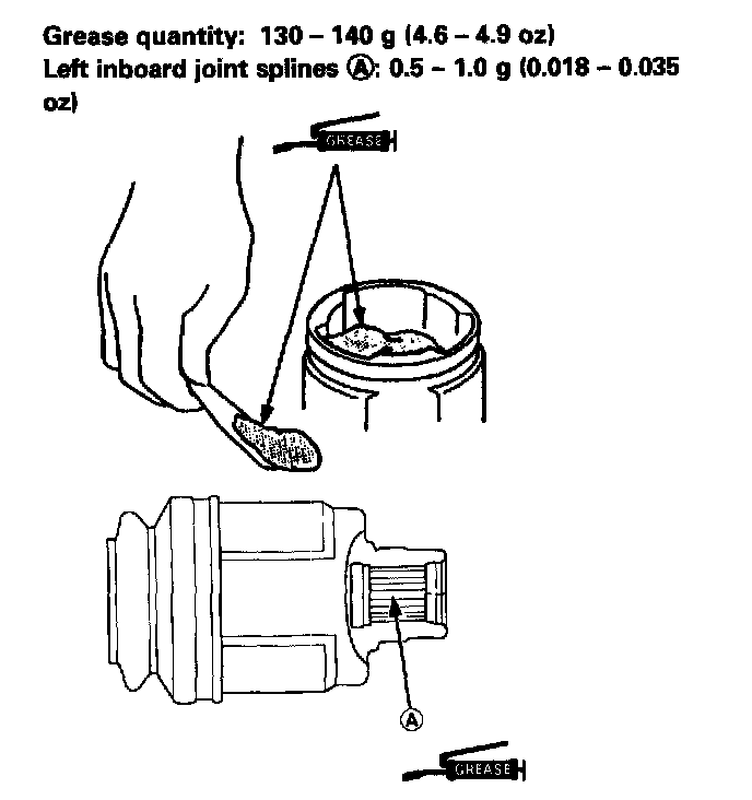 - Grease: Thoroughly pack the inboard and outboard joints and both joint boots with the joint grease included in the new driveshaft set.