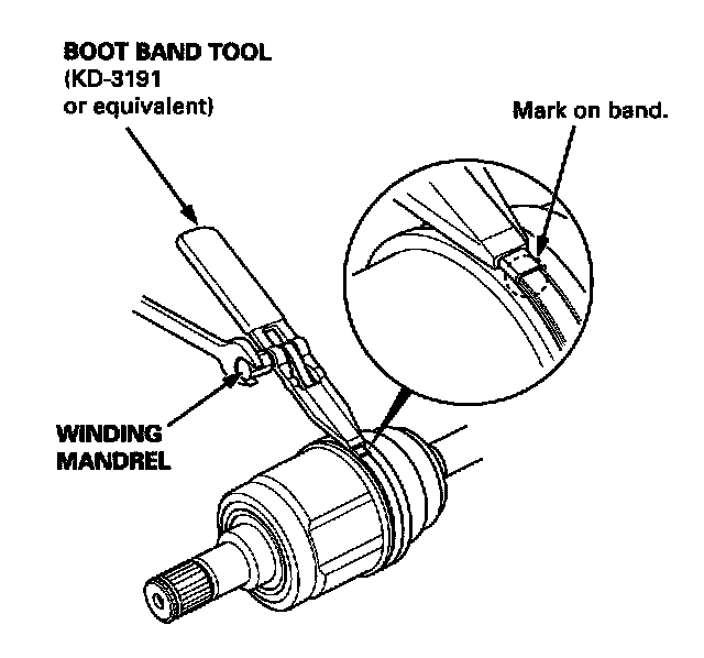 2. Install the boot band and outboard boot, then remove the vinyl tape. Take care not to damage the boot.
