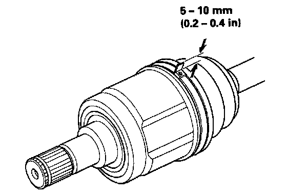 8. Adjust the length of the driveshafts to the specifications, then adjust the boots to halfway between full compression and full extension. Make sure the ends of the boots seat in the groove of the driveshaft and joint.