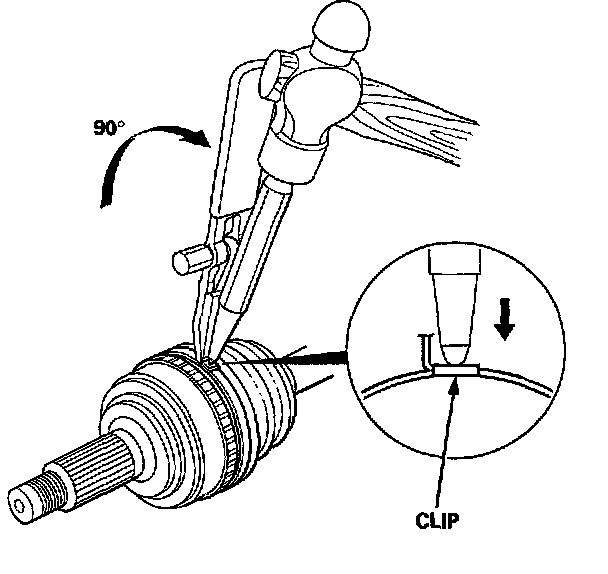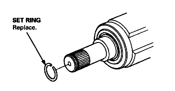 1. Carefully clamp the driveshaft in a vise with soft jaws, then remove the set ring from the inboard joint.