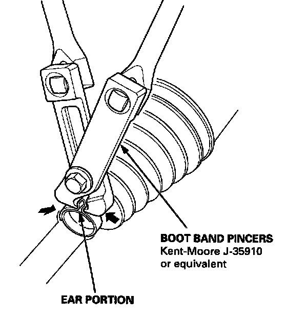 11. Close the ear portion of the band with a commercially available boot band pincers Kent-Moore J-35910 or equivalent.