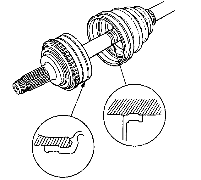 13. Fit the boot ends onto the driveshaft and the outboard joint.