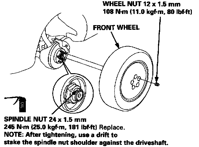 8. Apply engine oil to the seating surface of the new spindle nut.