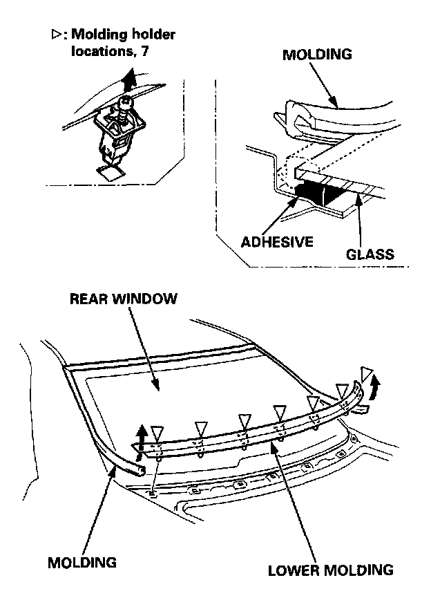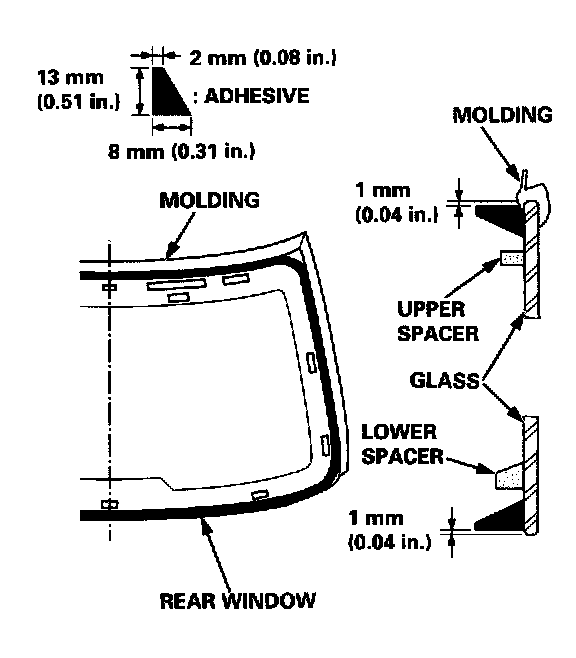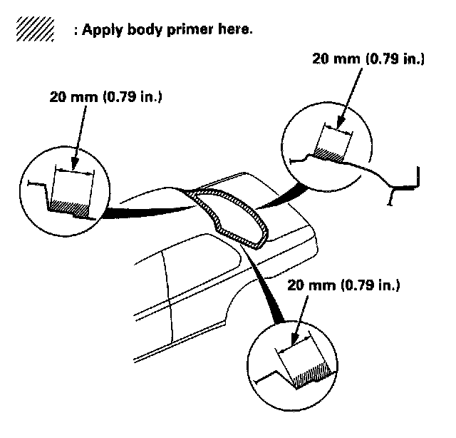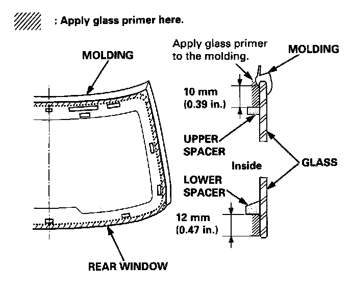 - Never touch the primed surfaces with your hands. If you do, the adhesive may not bond to the rear window properly, causing a leak after the rear window is installed.