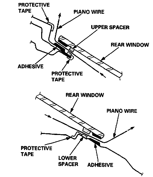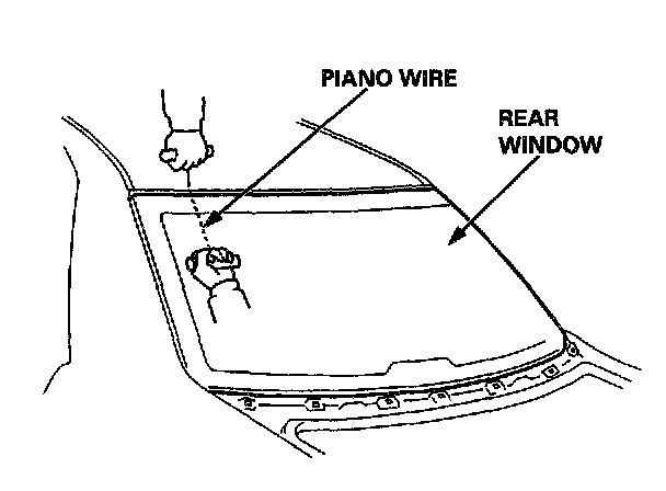 CAUTION: Hold the piano wire as close to the rear window as possible to prevent damage to the body.