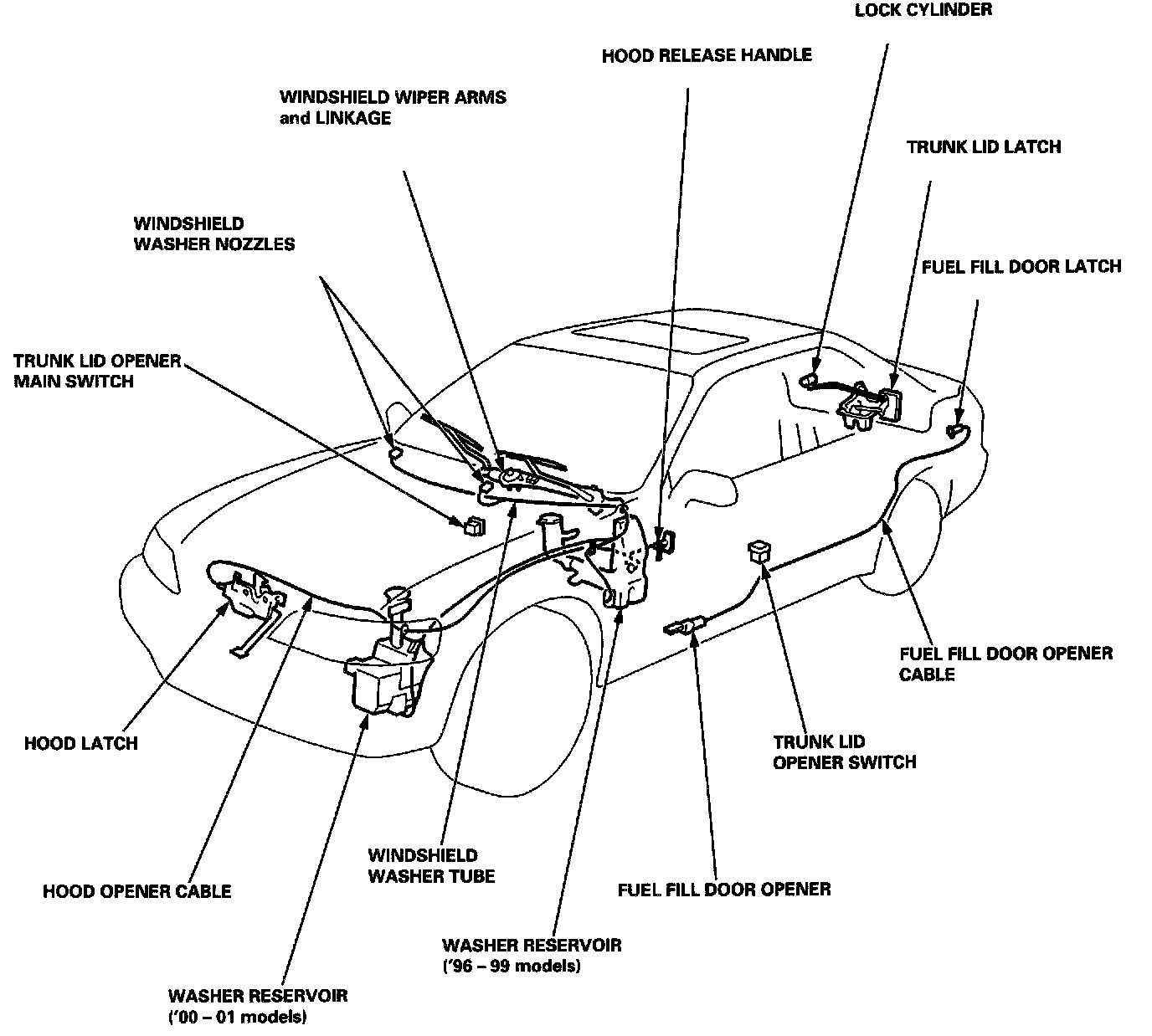 Opener Cable/Opener And Latch/Wiper and Washer Component Location Index: