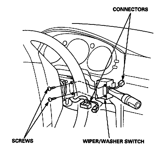 3. Disconnect the connectors from the wiper/washer switch, then remove the two screws and the switch.