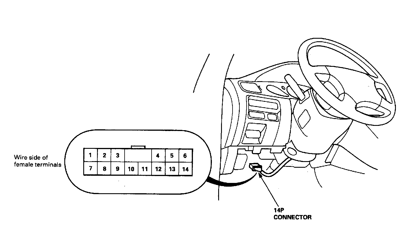 1. Remove the dashboard lower cover.2. Disconnect the combination switch harness 14P connector from the main wire harness.