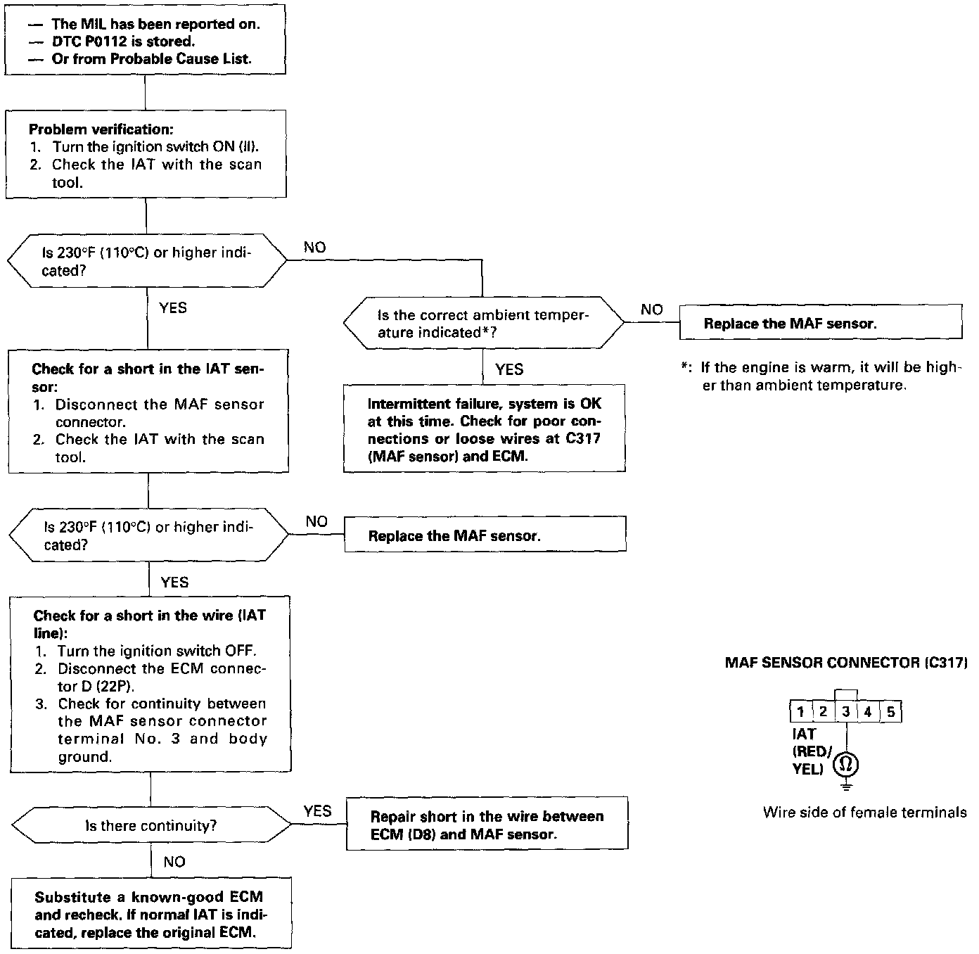 Air Temperature Sensor ( Ambient / Intake ): Testing and Inspection