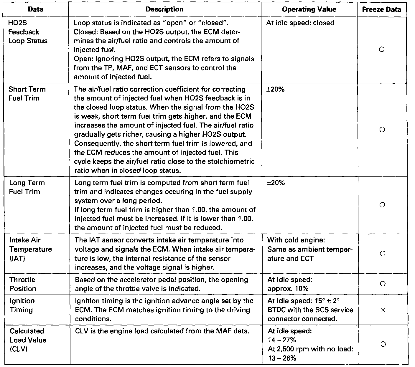 By connecting the OBD II scan tool or the Honda PGM Tester to the 16P data link connector (DLC), various data can be retrieved from the ECM. The items listed in the table above conform to the SAE recommended practice.
