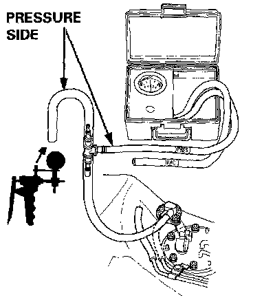 1. Remove the fuel fill cap.2. Remove the vapor line from the EVAP two way valve on the fuel tank, and connect it to a T-fitting from vacuum gauge and vacuum pump as shown.