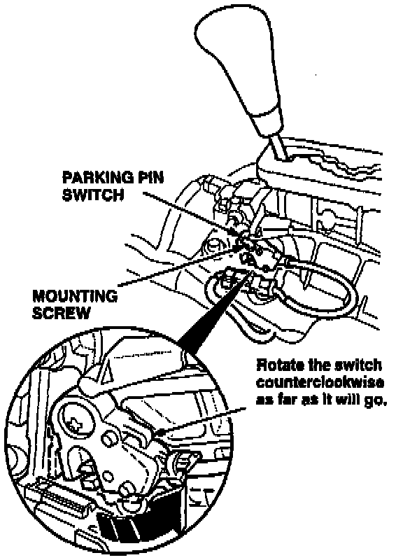 2. Loosen the parking pin switch mounting screw. Rotate the switch counterclockwise as far as it will go (about 0.5 mm), then tighten the mounting screw.
