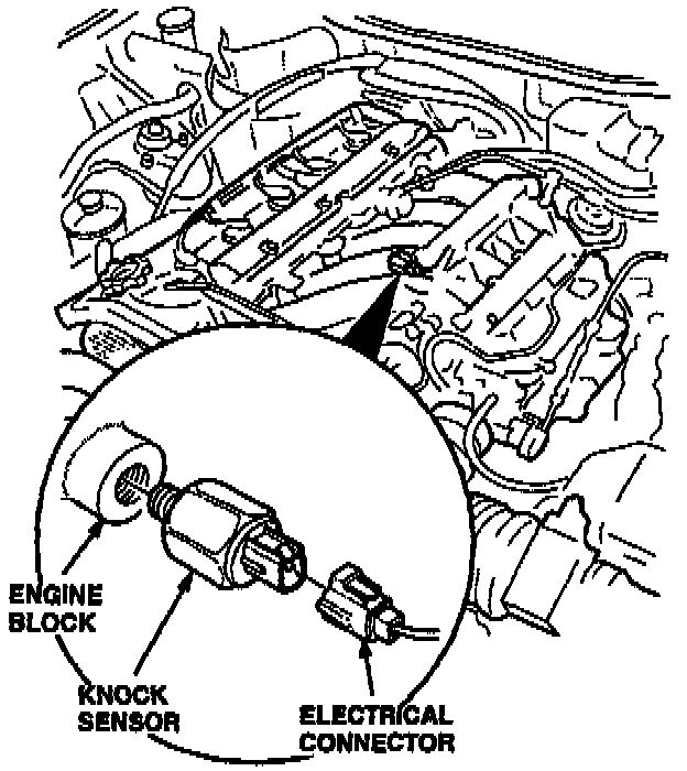 4. Position the solenoid and tank so you can see the rear knock sensor. Disconnect the electrical connector from the sensor; then remove the sensor with a 24 mm socket on a universal extension.
