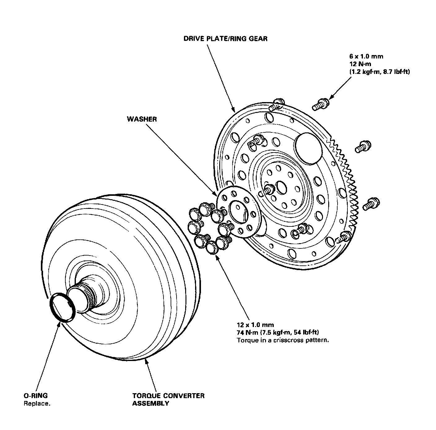 Flex plate Mounting Bolts [1] 74 Nm (54 ft. lbs.)