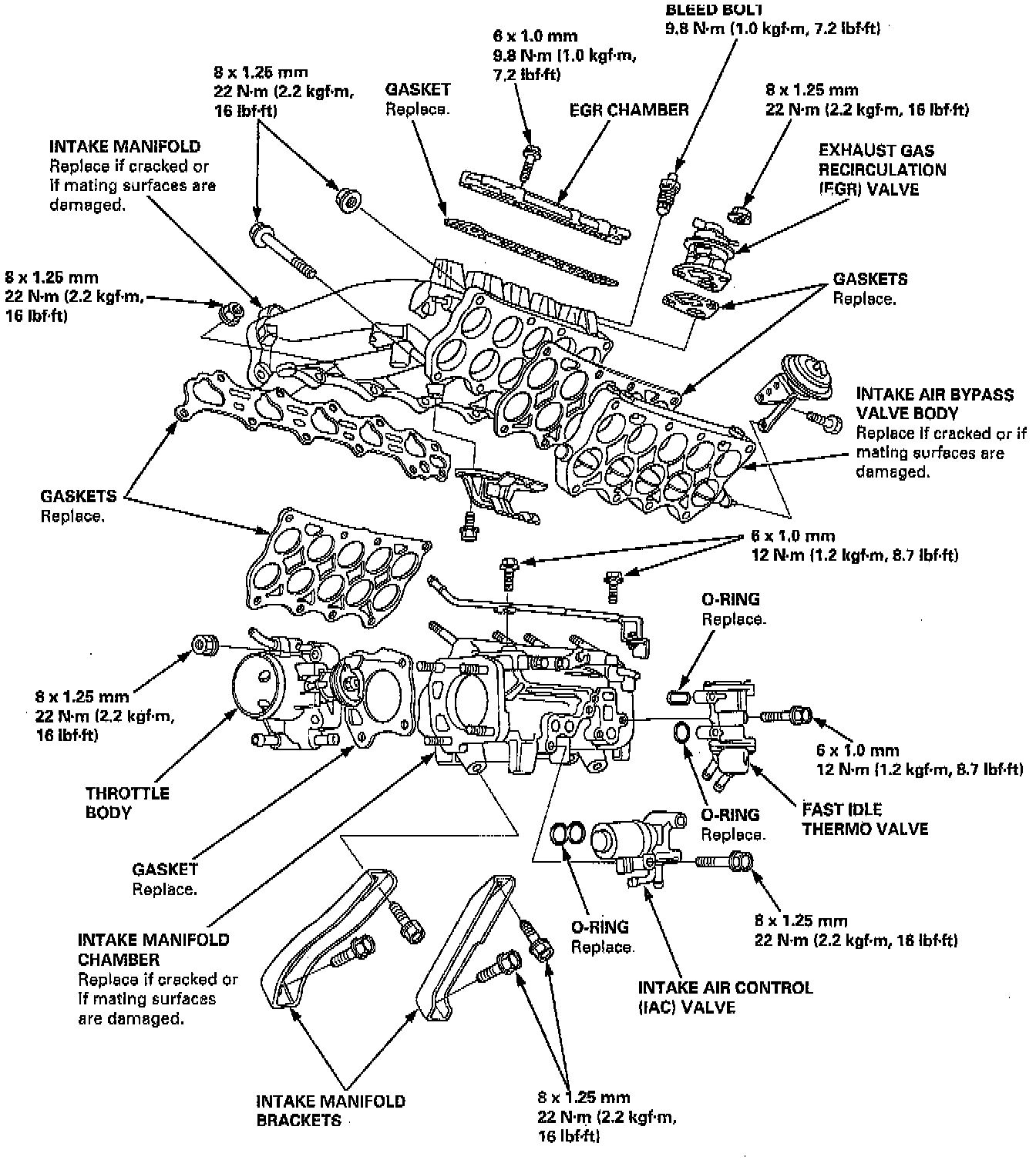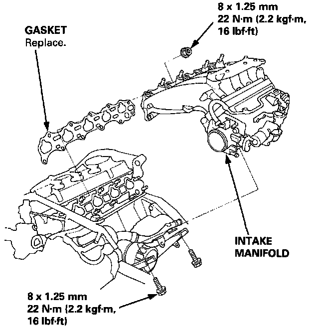 Tighten intake manifold nuts in a crisscross pattern in two or three steps, beginning with the inner nuts.