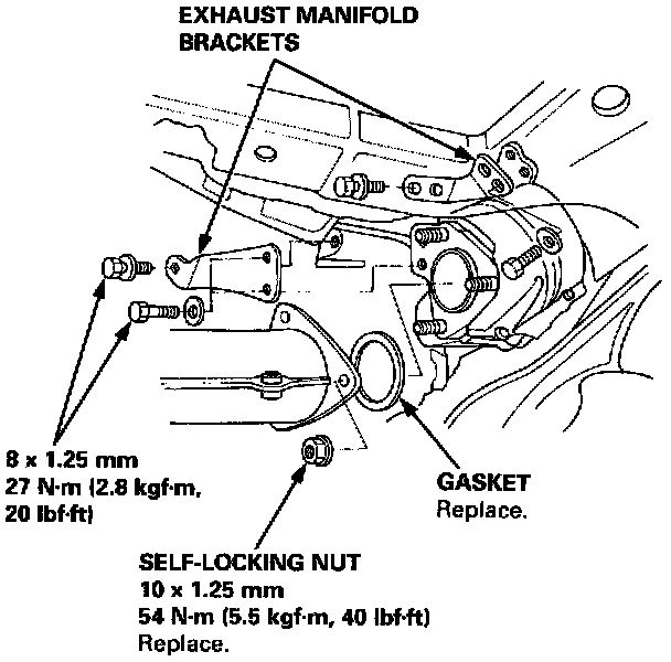Tighten exhaust manifold nuts in a crisscross pattern in two or three steps, beginning with the inner nut.